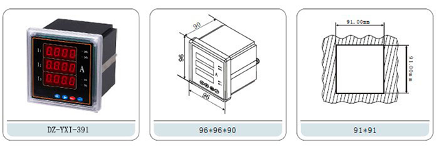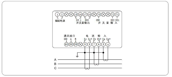 顯示:三排LED同時(shí)顯示A、B、C三相電流